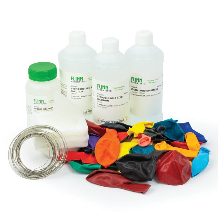 Use stoichiometry and gas laws to predict the volume of gas that will form with this fun and engaging kit! Students analyze reactions using stoichiometry, limiting/excess and the ideal gas law to enjoy a new twist on stoichiometry.