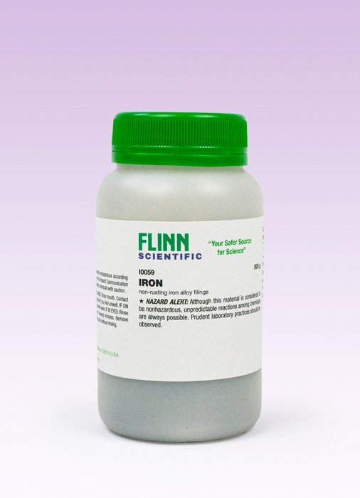 Pure iron filings quickly oxidize (rust) and can be messy. Flinn’s iron alloy metal filings act just like iron filings for magnetism experiments, but resist oxidation. Use pure iron filings for iron sulfide or other chemistry experiments.