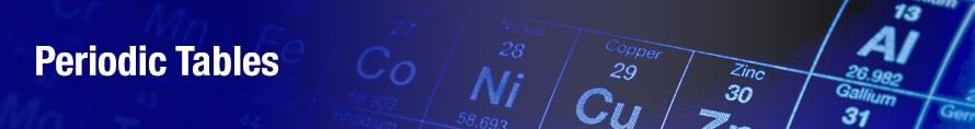 Flinn Scientific offers a wide variety of periodic table sizes; from a huge 8'x 4' poster to a small 3"x 5" pocket size. There is even a periodic table jigsaw puzzle and t-shirts!