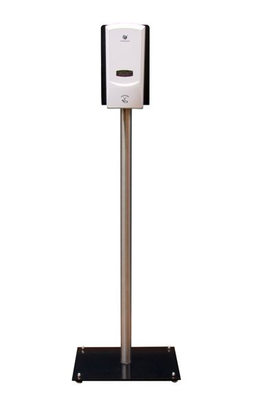 Essential for today's public spaces! The stand is suitable for indoor and outdoor use, with a durable powder-coated base and mounting plate to withstand the elements. It is easy to assemble and move! The dispenser mounts on the stand with an universal mounting plate that fits most dispensers. It can also be wall-mounted either with theft resistant screws, or by two-sided tape (not included). The motion-activated, touchless gel dispenser provides clean, accessible hand sanitization. It comes with a refillable, 1000-ml capacity plastic bottle—hand sanitizer is not included.